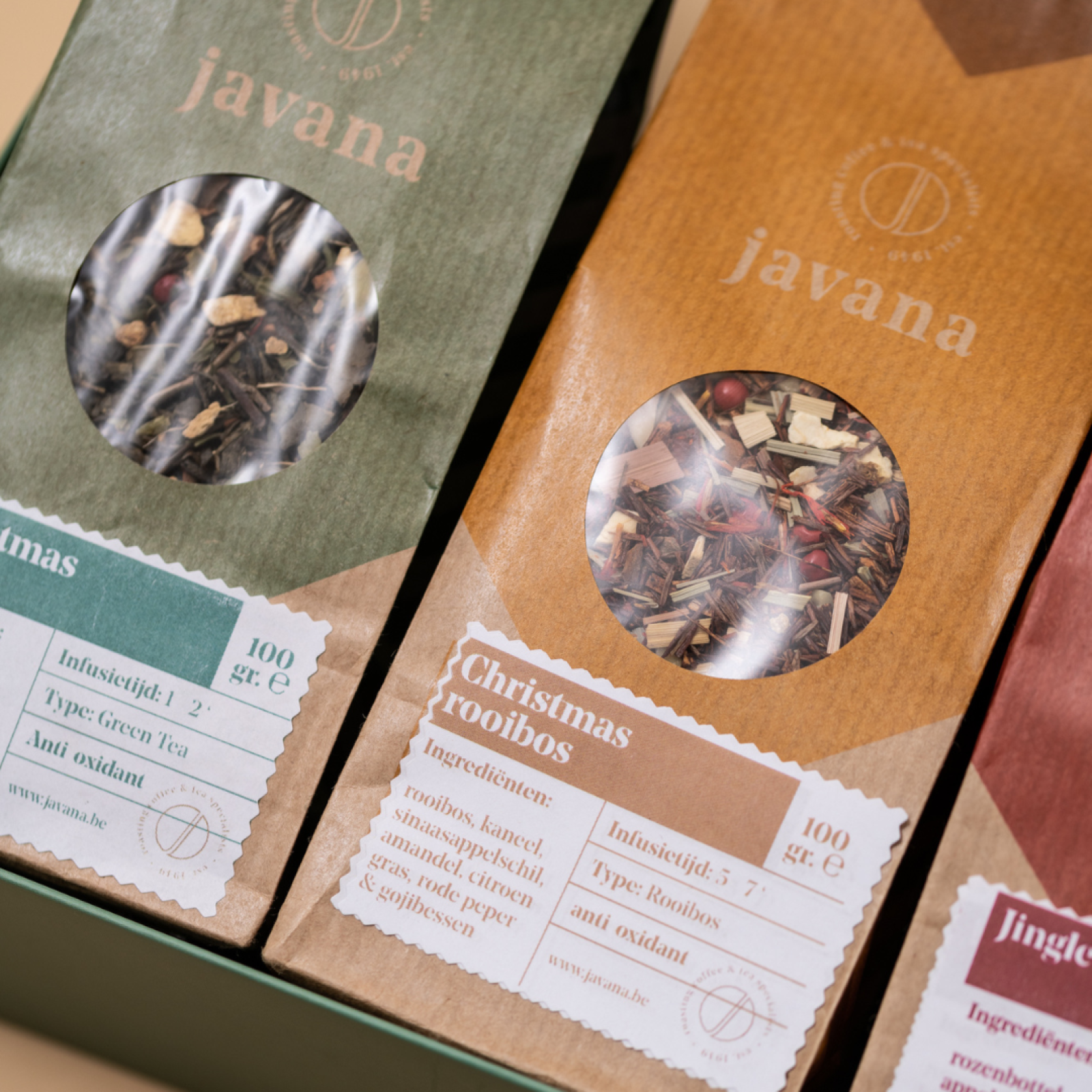 Content: Christmas Green (100 g), Christmas Rooibox (100 g), Jingle Bells (100 g).